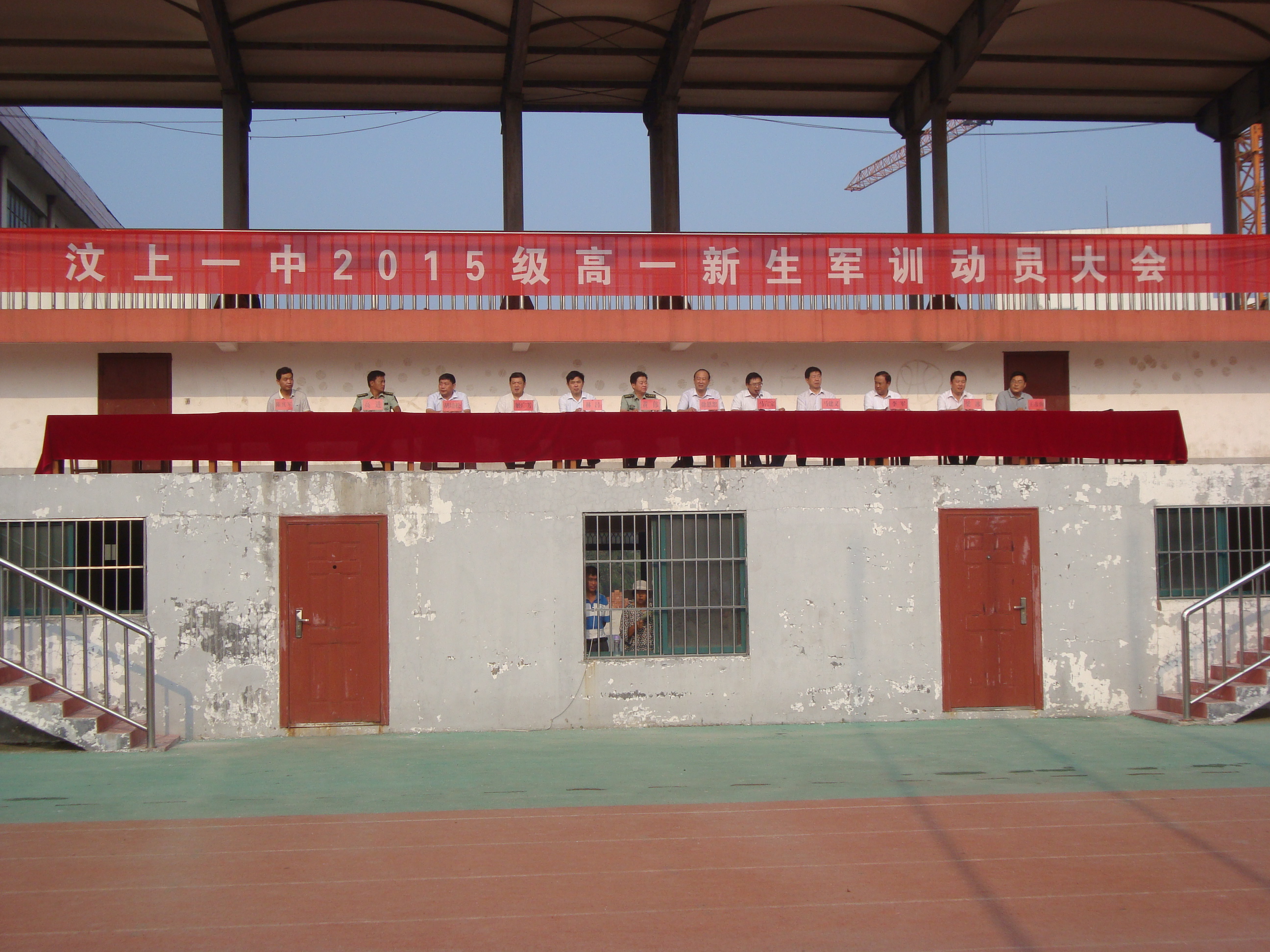 在這個祥瑞滿懷、秋風送爽的八月,我們汶上一中隆重舉行2015級高一新生軍事訓(xùn)練動員大會,將以軍訓(xùn)這種特殊而火熱的方式,開始我們?nèi)觌y忘而又可貴的高中生活。首先祝賀在場的2100多名新同學(xué),你們經(jīng)過九年寒窗的拼搏與奮斗,經(jīng)歷汗水與淚水的交織與凝聚,考入汶上一中這所歷史久遠而又富有朝氣的學(xué)校,滿載著新的希望,繼續(xù)追求屬于青春的美好夢想! 對于你們的到來,我們表示誠摯的歡迎!