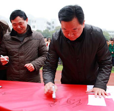 宜昌教育新聞網(wǎng)訊(記者 孟霄 付虹麗 通訊員 向安定)日前,當(dāng)陽(yáng)一中校長(zhǎng)徐家森率當(dāng)陽(yáng)電教儀器站站長(zhǎng)宋萬(wàn)明、當(dāng)陽(yáng)市永飛礦業(yè)有限公司總經(jīng)理李國(guó)兵以及廟前鎮(zhèn)政府…[詳細(xì)]