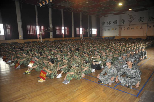 會(huì)上,彭占明同志作了軍訓(xùn)動(dòng)員報(bào)告,高一年級(jí)主任仇立華對(duì)軍訓(xùn)內(nèi)容和作息時(shí)間作了具體安排。軍訓(xùn)教官代表司志明和184班學(xué)生代表徐曉雯分別作了表態(tài)發(fā)言。
