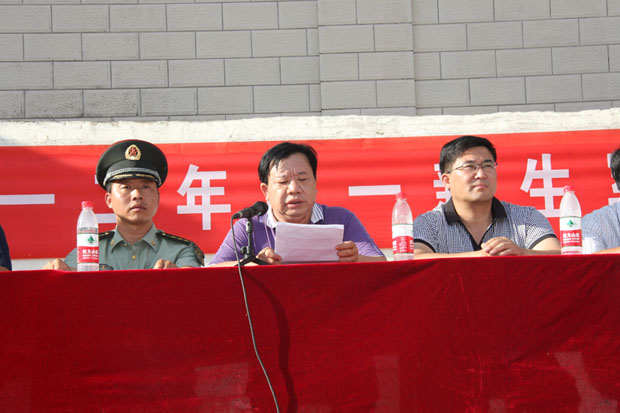 匯操表演首先進行了莊嚴的升國旗儀式,第二項高一18個班依次進行匯操表演,全體軍訓學生的颯爽英姿和整齊劃一的動作充分展示了軍訓所取得的成果。第三項楊典臻校長代表學校向袁紅松營長贈送錦旗,表達對全體軍訓教官的感謝,第四項高炮旅袁紅松營長進行了國防教育的講話,分析了國內外的形勢,講解了國防知識,最后希望同學們發(fā)揚解放軍的優(yōu)良傳統(tǒng)和鋼鐵意志,努力學習,報效祖國。第五項高一(2)班學生李亞茹代表全體高一新生發(fā)言,表達了進入學校和參加軍訓的感受,向全體高一新同學發(fā)出繼承解放軍的優(yōu)良革命傳統(tǒng),努力學習,勇攀高峰的倡議。第六項學校楊典臻校長進行了軍訓總結講話,楊校長在講話中充分肯定了本次軍訓的成果,希望同學們把在軍訓中表現(xiàn)出來的思想境界、意志品質、組織紀律和團結互助、拼搏向上的精神堅持下去,融入到今后的學習和生活中,體現(xiàn)到校風和學風中,不斷激勵自己向新的目標邁進,努力成為無愧于時代要求的優(yōu)秀高中生。