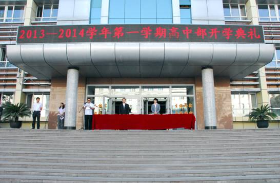 典禮在莊嚴的國歌聲中拉開帷幕。校長楊學(xué)東作了熱情洋溢的新學(xué)期致辭。他首先對高一年級的700多新生表示了真誠的歡迎和良好的祝愿,對過去一學(xué)年高中部三個年級所取得的成績表示充分的肯定和熱烈的祝賀,對全體教職員工為學(xué)校發(fā)展所做出的巨大貢獻表示了由衷的感謝,最后對所有師生新學(xué)期的工作、學(xué)習(xí)提出了更高的希望和要求。