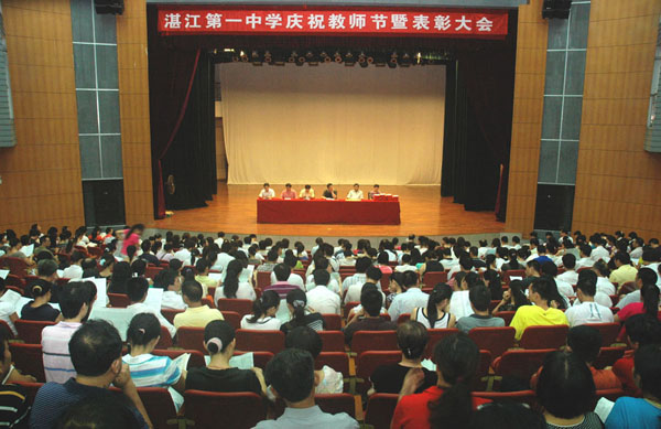 9月8日下午,我校在雪卿藝術(shù)館隆重舉行慶祝教師節(jié)暨表彰大會(huì),大會(huì)表彰一批在2008—2009學(xué)年度教書育人工作中做出顯著成績(jī)的先進(jìn)集體和先進(jìn)個(gè)人。這次受表彰的先進(jìn)處室5個(gè)、先進(jìn)級(jí)組2個(gè)、先進(jìn)科組8個(gè)、優(yōu)秀年級(jí)主任3人、優(yōu)秀科組長(zhǎng)7人、教學(xué)骨干12人、教學(xué)新秀19人、十佳班主任10人、優(yōu)秀班主任47人、優(yōu)秀教師52人、先進(jìn)工作者36人。