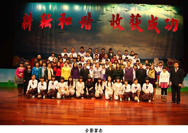 從12月初的啟動活動到12月中旬的初賽,各個班級緊鑼密鼓的籌備。2011年12月31日上午進行決賽,18個比賽班級經過激烈角逐評出一等獎4名,二等獎6名,三等獎8名,畢業(yè)班獲紀念獎。每個班級精心選擇曲目,《青春舞曲》、《國家》、《愛我中華》、《相親相愛》等大家耳熟能詳?shù)母枨蔀閰①惖臒衢T曲目。比賽中,各參賽班級演唱形式多樣,各具特色,同學們精神飽滿、充滿激情,表達了對祖國,對學校由衷地熱愛與贊美。我校霞光少年民樂團和校街舞社團也在聯(lián)歡會上展示了他們的風采,我校高二一班重新填詞的歌曲《民族歡迎你》唱出了民族學子對學校對班集體的熱愛之情,高二7班李楊老師與同學們合唱的歌曲《夢的怒放》展現(xiàn)了師生的和諧融洽,一曲曲激情澎湃的演繹,一首首催人奮進的歌曲,深深感染了在場的每一名觀眾。