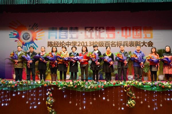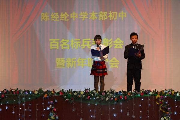 2013年12月30日,陳經(jīng)綸中學(xué)本部初中召開“星光燦爛, 感動經(jīng)綸”2013年百名標(biāo)兵表彰暨新年聯(lián)歡會。陳經(jīng)綸中學(xué)校長張德慶、副校長穆潔、于亞平、校長助理劉忠毅、初中主管校長賀小兵、支部書記陶苒、教學(xué)主任朱海濤、副主任高殿軍、德育副主任薛金紅出席活動,初中部全體師生與會。