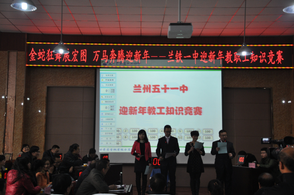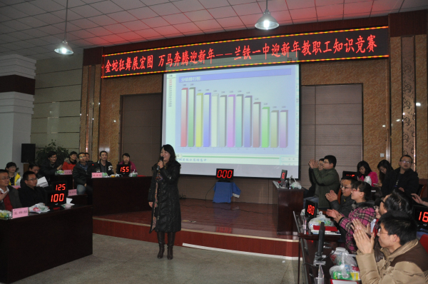 12月27日,由校工會、校辦室、政教處主辦的“金蛇狂舞展宏圖萬馬奔騰迎新年——蘭鐵一中教職工迎新知識競賽”在綜合樓三樓報告廳隆重舉行,來自各教研組、各處室的13支參賽隊伍參加了必答題、搶答題、風(fēng)險題的比拼,最終決出一等獎兩隊、二等獎三隊、三等獎四隊及優(yōu)秀獎若干。