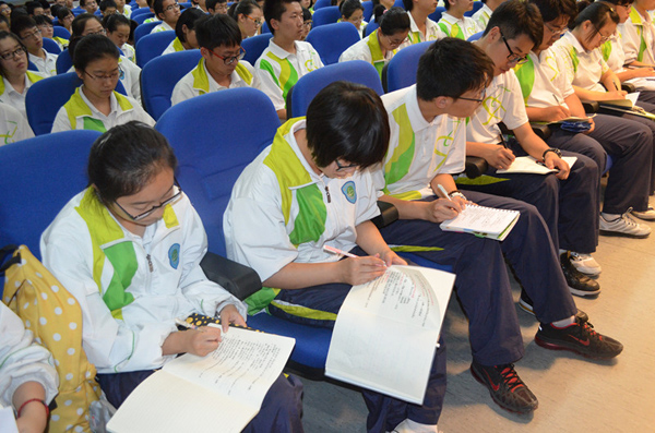 整個(gè)一個(gè)多小時(shí)的報(bào)告,同學(xué)們被張校長的演講深深地吸引住了。同學(xué)們時(shí)而鴉雀無聲,時(shí)而開懷大笑。當(dāng)張校長講到動情和激動之處,不時(shí)引來同學(xué)們陣陣熱烈的掌聲。講座結(jié)束了,同學(xué)們還意猶未盡,不少同學(xué)涌向講臺要拷貝講座內(nèi)容以便回去細(xì)細(xì)品味!