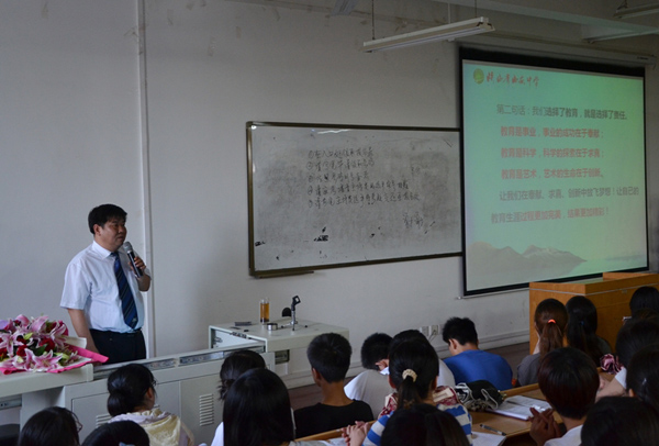 張校長(zhǎng)教學(xué)資歷深厚,管理經(jīng)驗(yàn)豐富,他的報(bào)告以溫家寶總理“教育是心靈與心靈的溝通,靈魂與靈魂的交融,人格與人格的對(duì)話”的名言開場(chǎng),結(jié)合自己30年來的教育教學(xué)和管理經(jīng)驗(yàn),從當(dāng)前基礎(chǔ)教育教學(xué)實(shí)踐的新形勢(shì)、新課程改革的理念和要求、教師應(yīng)有的知識(shí)儲(chǔ)備和基本素質(zhì)等闡述了如何成為一名優(yōu)秀的中學(xué)教師。報(bào)告會(huì)上,張克強(qiáng)校長(zhǎng)通過剖析教學(xué)實(shí)踐的具體案例,勉勵(lì)陜師大學(xué)生要樹立高尚的師德,要飽有對(duì)學(xué)生的責(zé)任心,要學(xué)會(huì)做教學(xué)反思,要注重教育教學(xué)研究,深刻闡釋了“教師的智慧可以啟發(fā)學(xué)生的智慧、教師的激情可以點(diǎn)燃學(xué)生的激情、教師的心靈可以感化學(xué)生的心靈、教師的成功可以引領(lǐng)學(xué)生的成功”的深刻含義。報(bào)告中,張校長(zhǎng)還為陜師大學(xué)生提出了許多中肯的建議,鼓勵(lì)他們加強(qiáng)師德修養(yǎng),樹立終身學(xué)習(xí)理念,提高業(yè)務(wù)素質(zhì),做研究型的中學(xué)教師,勉勵(lì)他們堅(jiān)守自己的職業(yè)選擇,無限忠誠(chéng)于黨和人民的教育事業(yè),兢兢業(yè)業(yè),淡泊名利,積極嘗試,勇于挑戰(zhàn),通過自身的不懈努力,完美實(shí)現(xiàn)“適應(yīng)期教師——合格教師——成熟教師——骨干教師——學(xué)科帶頭人——專家型教師”的成長(zhǎng)蛻變。