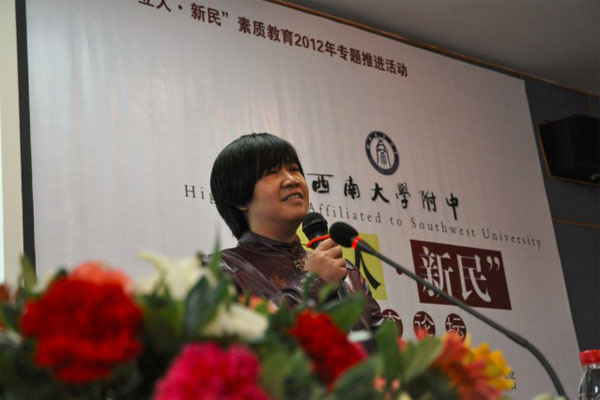 2012年12月6日下午14:30——17:30,西南大學(xué)附屬中學(xué)“立人·新民”素質(zhì)教育2012專題推進活動專家論壇隆重舉行。論壇由張萬瓊校長主持,李北京師范大學(xué)科學(xué)傳播與教育研究中心副主任、教育心理與學(xué)校咨詢研究所研究員、中國智慧工程研究會常務(wù)理事、北京市創(chuàng)新人才培養(yǎng)項目專家組成員李亦菲教授,美國教育中心升學(xué)指導(dǎo)顧問Brett Andrew Prim先生、重慶市教育學(xué)會課程與教學(xué)論專業(yè)委員會副理事長、重慶市江北區(qū)進修學(xué)院院長李大圣教授分別作了精彩講座。