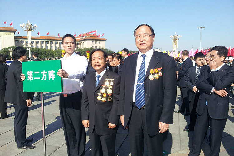 在中華人民共和國(guó)63周年華誕之際,10月1日上午,胡錦濤等黨和國(guó)家領(lǐng)導(dǎo)人來(lái)到天安門廣場(chǎng),同首都各界代表一起,向人民英雄紀(jì)念碑敬獻(xiàn)花籃。我校校長(zhǎng)張文茂作為全國(guó)勞模代表應(yīng)邀赴京參加了這一儀式。