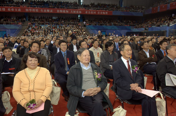 此次活動由北京大學(xué)物理學(xué)院承辦,諾貝爾物理學(xué)獎獲得者楊振寧、崔琦、李政道分別以到會發(fā)言和賀信的方式,暢談中國物理百年。同時,應(yīng)邀出席此次大會的還有甘子釗、薛其坤、詹文龍等70余名院士和鄧楠等3000名北大物理學(xué)院知名校友、社會各界人士、海內(nèi)外嘉賓等,大家歡聚一堂,共襄盛舉。
