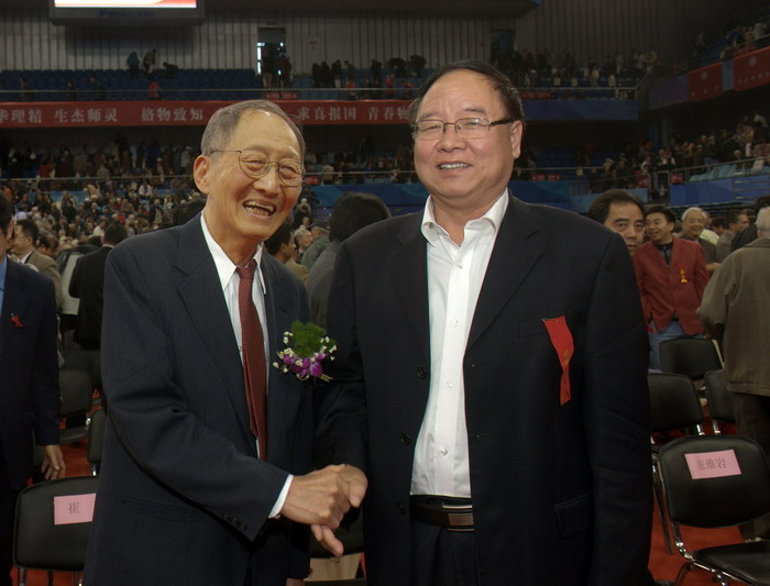 北京大學(xué)黨委書記朱善璐與張文茂校長親切握手
