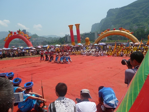 為進(jìn)一步弘揚(yáng)我縣傳統(tǒng)體育文化,推介我縣豐富的文化旅游資源,充分展示我縣人民奮發(fā)有為、團(tuán)結(jié)和諧,積極向上的精神風(fēng)貌。二零一三年農(nóng)歷五月初五日端午節(jié),我縣組織有500多名運(yùn)動(dòng)員參加的23支代表隊(duì),在縣城烏江河段舉行了中國(guó)·思南烏江龍舟節(jié)暨第二屆“隆昌杯”龍舟賽??h委書(shū)記胡洪成、縣委副書(shū)記馮華、縣委常委政法委書(shū)記史大高、縣委常委宣傳部長(zhǎng)楊雪峰、縣人民政府副縣長(zhǎng)黃輝、安億軍、縣人大常委會(huì)副主任周學(xué)彪、縣政協(xié)副主席方寧等出席開(kāi)幕式并觀看比賽。