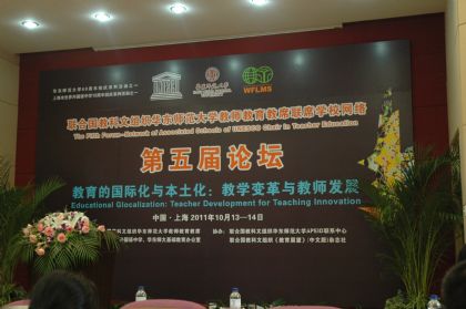 2011年10月14日上午,我校張昕校長(zhǎng)受邀出席在上海市徐匯區(qū)世界外國(guó)語(yǔ)學(xué)校舉辦的“聯(lián)合國(guó)教科文組織華東師范大學(xué)教師教育教席聯(lián)席學(xué)校網(wǎng)絡(luò)第五屆論壇”。此次論壇屬于華東師范大學(xué)60周年校慶系列活動(dòng)之一,論壇主題為“教育的國(guó)際化與本土化:教學(xué)變革與教師發(fā)展”。張昕校長(zhǎng)在論壇上作題為“地球?qū)W習(xí)村的故事”的演講,主要介紹了我校東校區(qū)融合多元文化、建設(shè)國(guó)際社區(qū)、打造地球?qū)W習(xí)村的實(shí)踐和經(jīng)驗(yàn)。