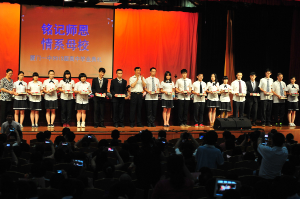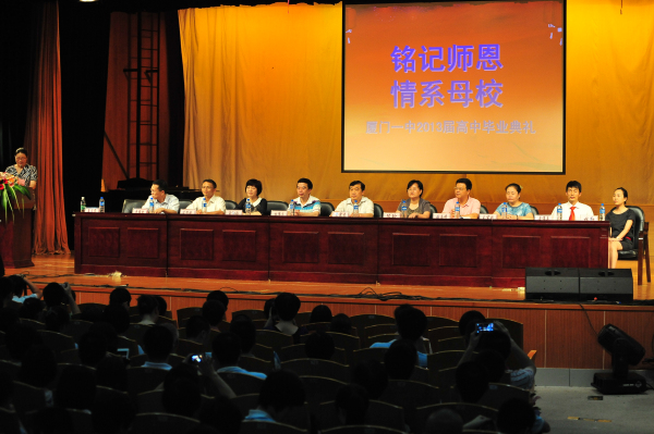 在這鳳凰花開的畢業(yè)季節(jié),廈門一中2013屆高三畢業(yè)晚會于6月21日晚上7時在景行樓千人大禮堂隆重舉行。廈門一中周君力校長、校黨委陳珍書記、林偉慶副校長、張南峰副校長、歐陽玲副校長等校領(lǐng)導(dǎo)、部分學(xué)生家長以及高三年段全體師生共同觀看了這場晚會。