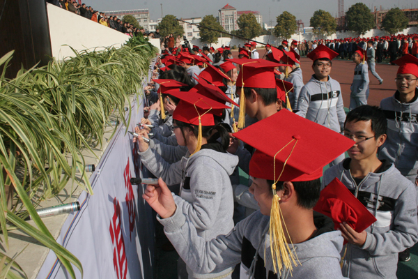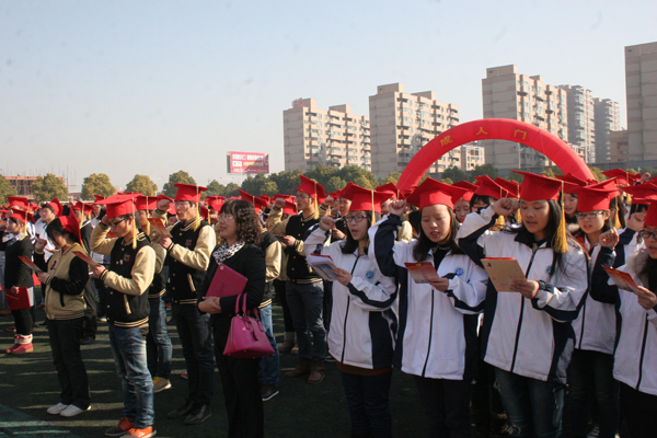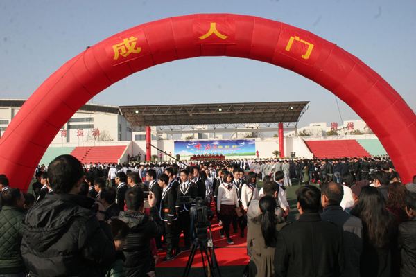 1月4日上午,天門中學(xué)舉行“感恩、責(zé)任、理想”2014屆學(xué)生成人儀式。1500余名學(xué)生昂揚(yáng)邁過成人門接受了“加冕禮”,擁抱父母,莊嚴(yán)宣誓,踴躍簽名,紀(jì)念自己成年。校長朱國璋、黨委書記劉千軍等學(xué)校領(lǐng)導(dǎo),全體高三教師以及部分學(xué)生家長參加了儀式活動(dòng)。