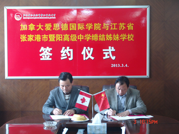 經(jīng)過前期的精心準(zhǔn)備,3月4日上午,加拿大愛思德國(guó)際學(xué)院董事長(zhǎng)、總校長(zhǎng)陳喬峰先生一行4人到訪我校,朱建興校長(zhǎng)在行政研訓(xùn)室親切接見,賓主雙方就加強(qiáng)校際聯(lián)系合作辦學(xué)等事宜進(jìn)行了友好協(xié)商,并簽定了合作協(xié)議書。