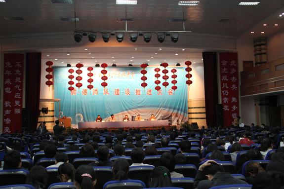 朱元祥校長在報告中總結(jié)了近年來我校師德師風建設(shè)工作的有效模式和方法,指出了當前師德師風建設(shè)過程中不盡如人意的現(xiàn)象,提出了今后我校師德師風建設(shè)需要落實的五大重點舉措:抓好班子帶動、樹立典型示范、加強機制建設(shè)、確保條件保障、完善過程督查。朱校長號召全體教師要牢記胡錦濤總書記“靜下心來教書,潛下心來育人”的教誨,投身師德師風建設(shè)的熱潮中,明師德,鑄師魂,揚師風,以一流的工作業(yè)績,為打造一流的四星級名校做出貢獻。