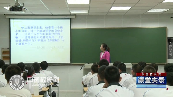想要了解一首詞所要表達(dá)的感情首先要了解詩人當(dāng)時(shí)的境遇,崔建紅老師引用余秋雨的《蘇東坡突圍》將故事發(fā)生的情境為同學(xué)們做了介紹,帶學(xué)生走進(jìn)蘇軾,同時(shí)也走進(jìn)今天的主題《念奴嬌·赤壁懷古》。