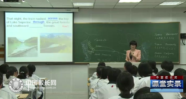 周艷紅老師簡單的勾畫出加拿大的大體輪廓,并在地圖上標(biāo)注出課堂中將要學(xué)習(xí)的內(nèi)容,周老師用這種方式既可以帶動學(xué)生的積極性,又可以讓學(xué)生們可以更加清晰的了解文章的內(nèi)容。