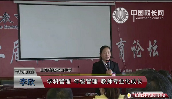 山東杜郎口中學(xué)語(yǔ)文老師李欣主要介紹了學(xué)校的學(xué)科管理、年級(jí)管理、教師專(zhuān)業(yè)化成長(zhǎng)的操作步驟及流程。