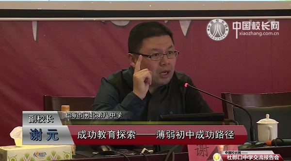 閘北八中從普通的農(nóng)村中學到升學率高(高考本科上線率高于80%)的好學校,謝校長用實際的數(shù)據(jù)來說明現(xiàn)在閘北八中的高辦學效率。