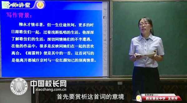 王翠玲老師首先讓學(xué)生來了解柳永這首詞的風(fēng)格及寫作背景,通過誦讀這首詞,同時(shí)讓學(xué)生掌握詩詞的誦讀技巧。