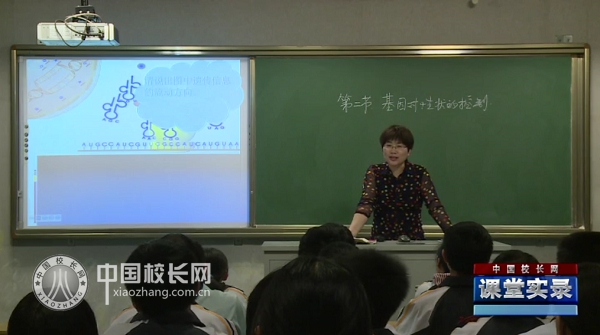 剛開課,閆桂嶺老師首先帶領(lǐng)學(xué)生對上節(jié)課的內(nèi)容進(jìn)行了回顧,再由淺入深的將“基因?qū)π誀畹目刂啤钡闹R點引入,形成一定的梯度,使全體學(xué)生都能在課堂上掌握好基礎(chǔ)知識。