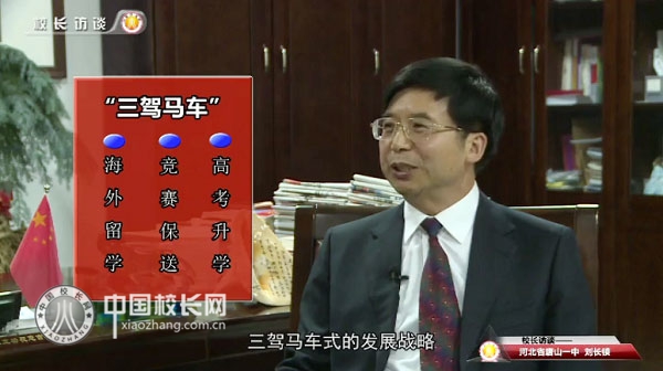 經(jīng)濟(jì)市場有三駕馬車,劉長鎖校長借鑒這一經(jīng)濟(jì)術(shù)語提出了三駕馬車式的學(xué)校發(fā)展戰(zhàn)略,即一體兩翼,高考作為主渠道,海外留學(xué)和競賽保送作為兩翼并駕齊驅(qū),培養(yǎng)全面發(fā)展的學(xué)生,使每位學(xué)生將來都可以考入自己理想的學(xué)校。