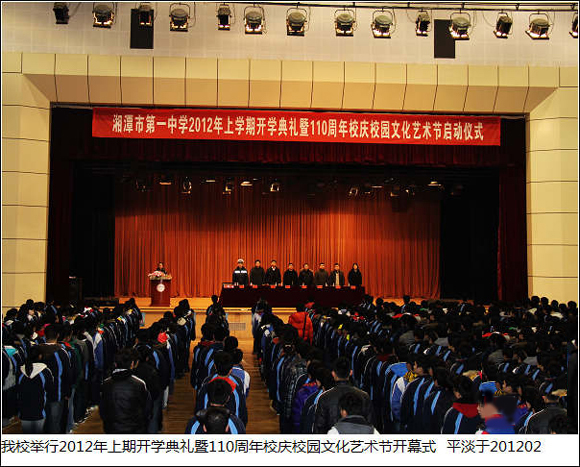 湘潭市第一中學校隆重舉行2012年上期開學典禮暨11周年校慶校園文化藝術(shù)節(jié)開幕式。典禮由學校黨委書記王昕主持,學校全體行政干部以及學校法制副