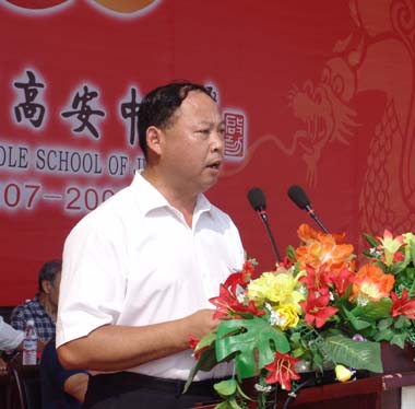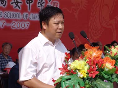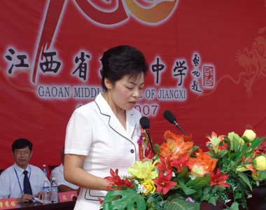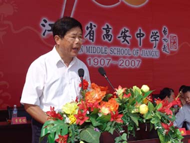 郭安宣讀省委書記孟建柱的賀信,省委常委、政法委書記舒曉琴的賀電及其他發(fā)來賀信賀電題詞的個(gè)人或單位名單,并代表高安市委市政府致賀詞