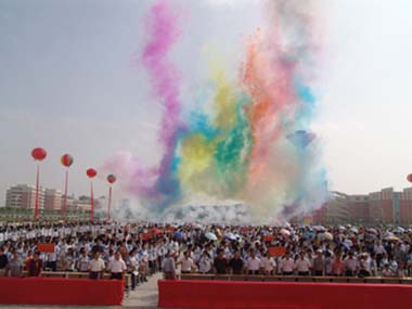 會(huì)場(chǎng)上禮炮聲聲,彩霧升騰