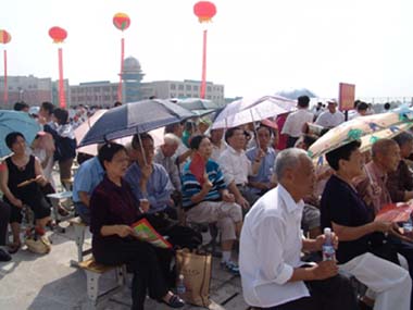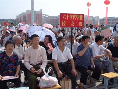 盡管秋陽(yáng)炙人,許多年老校友仍堅(jiān)持到慶典結(jié)束
