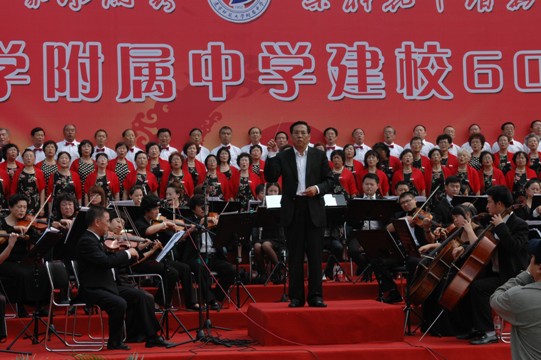 昨天的建校60周年慶典上,遼師附中校園里處處洋溢著溫馨的氣氛。老校友們久別重逢,相擁而泣,一位老校友還坐著輪椅來(lái)為母校慶祝生日;學(xué)校還派出了60余名小記者采訪前來(lái)參加慶典的校友們,校友們對(duì)昔日母校美好時(shí)光的回顧和感慨,讓小記者們?yōu)橹袆?dòng)……遼師附中68屆畢業(yè)生王永堂今年60多歲了,昨天,他和80多位老校友們一齊登臺(tái),為母校獻(xiàn)上了《老師我想你》、《復(fù)興之路》等大合唱。王永堂告訴記者,聽(tīng)說(shuō)母校要搞60歲生日慶典,老校友從4月份起就開(kāi)始每周排練幾次,大家希望母校的明天更美好。