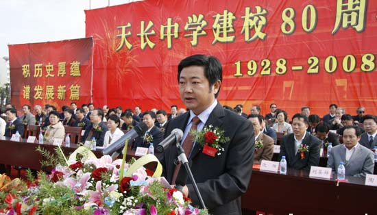 滁州市副市長朱云霞在發(fā)言中指出,八十年來,天長中學堅持與時俱進,開拓進取,堅持“注重發(fā)展教真人;開發(fā)潛能育全才”的辦學理念,取得了優(yōu)異的辦學成就。尤其是近幾年來,由于天長市委、市政府的高度重視和大力支持,率先建成了一流的新校區(qū),教育質(zhì)量在滁州市也名列前茅,高考升學人數(shù)連年位居全市榜首。希望天長中學在天長市委、市政府的正確領導下,以校慶慶典為契機,以科學發(fā)展觀為指導,秉承優(yōu)良傳統(tǒng),不斷教育創(chuàng)新,加快發(fā)展步伐,加強內(nèi)涵建設,再上新臺階,再創(chuàng)新輝煌。