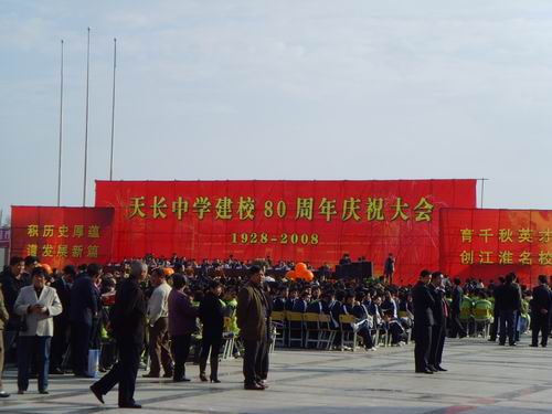 校長,安徽經(jīng)濟文化促進會天長分會各位老總,市直單位、各鄉(xiāng)鎮(zhèn)和市內(nèi)各大企業(yè)負責人,天長中學海內(nèi)外校友,曾在天中工作過的教職員工代表以及全體師生員工約6000人參加了慶典大會。