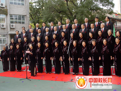 花甲之年的歷屆老校友組成的合唱團(tuán)為校慶助興