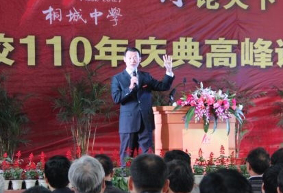 其中曹景行演講的題目是《面對新世紀(jì)挑戰(zhàn),呼喚新一代人才》。演講人剖析了100多年前桐城中學(xué)堂創(chuàng)辦之初,國際國內(nèi)風(fēng)云變化,以及桐中在民族危亡時期為國家培育的志士仁人,概述了桐城中學(xué)的輝煌歷史。分析了當(dāng)前國際國內(nèi)政治、經(jīng)濟(jì)形勢發(fā)展形勢,中國深化改革開放的機(jī)遇和挑戰(zhàn)。勉勵桐中學(xué)子胸懷天下,腳踏實地,崇尚道德,追求真理,敢于創(chuàng)新,做國家最需要的人才。胡一虎演講的題目是《我與桐城情》,副標(biāo)是解讀桐城基因。主講人以其父親23歲時離開桐城到臺灣后,父親用桐城文化哺育自己成長的親身經(jīng)歷,表達(dá)了自己與桐城割不斷的血緣關(guān)系和文脈關(guān)系。他認(rèn)為桐城文化的基因是:胸懷寬,心柔軟,會表達(dá)。勉勵桐中學(xué)子繼承“勉成國器”的校訓(xùn),學(xué)會用思想與世界溝通,做優(yōu)秀的文化傳承人。胡一虎的演講激情四射,語氣高昂,不時激起陣陣掌聲。