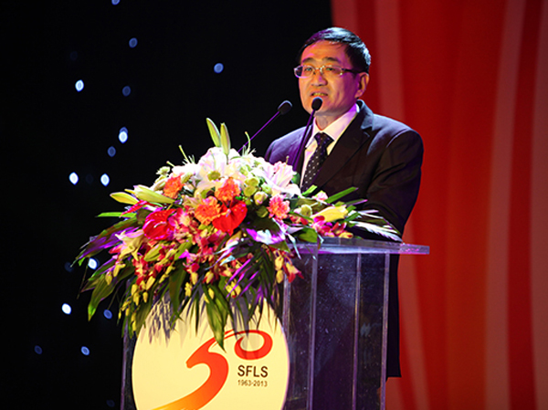 隨后上海外國語大學(xué)校長曹德明教授講話,曹校長說:50年來,上外附中辦學(xué)成績卓越顯著,為提升中國外語教育的綜合實力作出了貢獻。上外附中社會影響與日俱增,推動了中國中學(xué)教育的改革發(fā)展,擔(dān)當(dāng)了外國語學(xué)校的時代使命。曹校長希望附中全體師生員工繼續(xù)以海納百川的寬闊胸懷,以追求卓越的遠大目標(biāo),以開拓創(chuàng)新的精神面貌,全心全意地將附中辦成一所體現(xiàn)民族精神特點、具備世界一流水平的外國語學(xué)校,矢志不渝地培育勇立改革前沿,服務(wù)民族偉業(yè)的卓越人才,為中國教育事業(yè)再立新功。