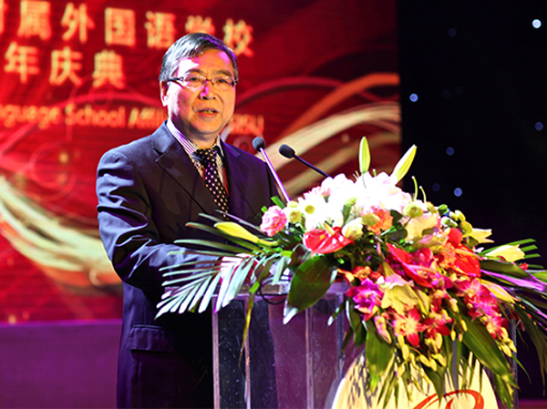 崔德明校長作了《肩負使命 奮勇開拓——為建設(shè)一流的國際化的外國語學(xué)校而奮斗》講話,崔校長在講話中全面回顧和總結(jié)建校50年來的辦學(xué)歷程。