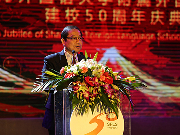上海外國語大學(xué)黨委書記、全國外國語學(xué)校工作研究會會長吳友富教授致詞