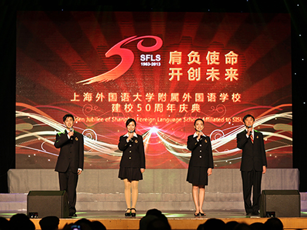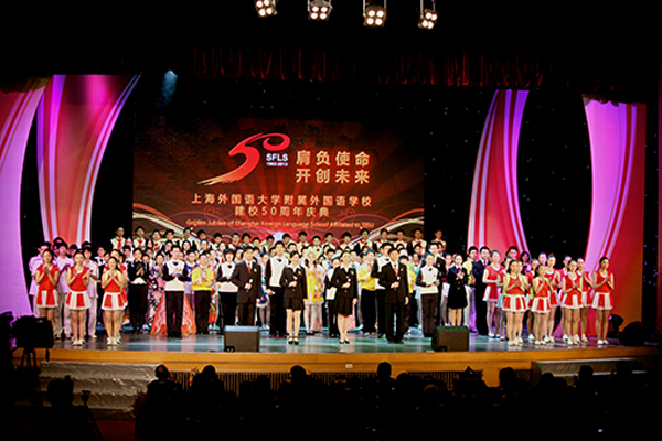 在悠揚的校歌合唱《飛向遠方》聲中,上海外國語大學(xué)附屬外國語學(xué)校50周年慶典大會圓滿結(jié)束。