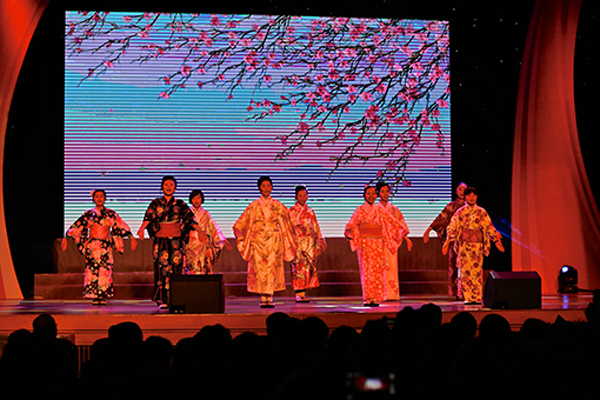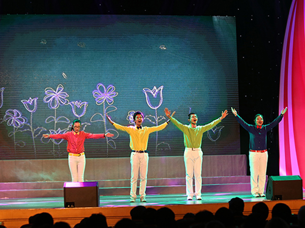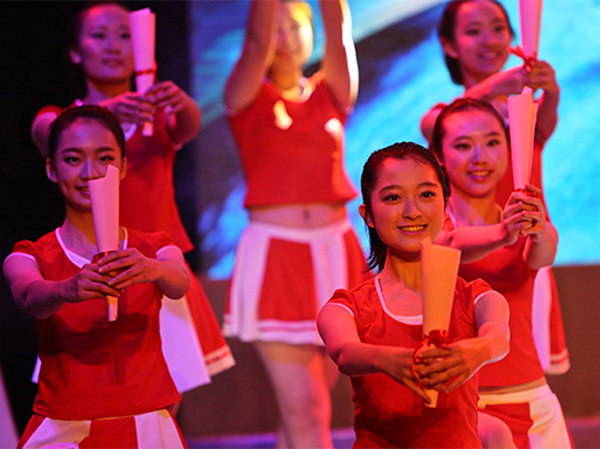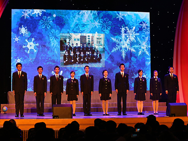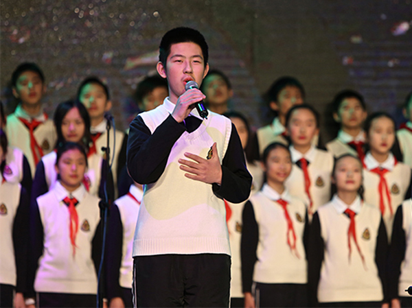 接著七位老校友代表上臺用詩歌表達他們對附中七年青春年華的回憶,也感慨在校七年的充實與收獲。其后熱情奔放的學(xué)生表演把慶典大會又推入新的高潮。