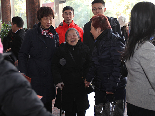 在慶典大會上當(dāng)方書記請出上外附中老校長劉葆宏老師、原黨總支書記陳瑋老師等九位老前輩、老領(lǐng)導(dǎo)上臺的時候,校友們?nèi)w起立為他們的恩師鼓掌,在雷鳴般的掌聲中九位老師接受了少先隊員獻上的鮮花。他們是附中發(fā)展的開拓者的代表,每一位附中人都會深深地感謝他們,感謝他們對黨的教育事業(yè)的熱愛和忠誠,感謝他們辛勤耕耘。庾信有言:落其實者思其樹,飲其流者懷其源。我們能在這座學(xué)識殿堂中落其實、飲其流,我們不會忘記當(dāng)年為上外附中的發(fā)展建下赫赫功勛的老前輩們。
