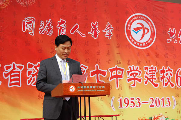 2013年9月27日,濟南七中喜迎六十華誕,眾多海內(nèi)外校友榮歸母校,與全校師生共同慶祝母校六十歲生日,與社會各界人士共同見證濟南七中六十年的輝煌成就。