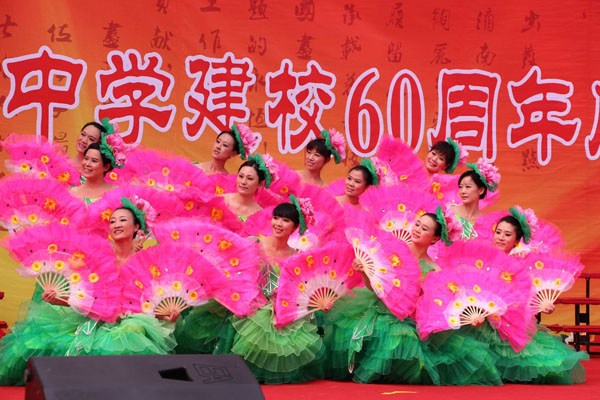 10點,“同譜育人華章,共創(chuàng)美好明天”——慶祝濟南七中建校60周年文藝演出正式開始。本次演出,所有演員都是在校師生,他們在課余時間精心排練,反復(fù)練習(xí),傾情演繹,用真誠的歌聲和曼妙的舞姿表達七中學(xué)子對母校的深厚情誼和真切祝福。整齊而富有活力的團體操,氣勢恢宏的大合唱,編排精美的舞蹈,深情而意蘊悠長的詩歌朗誦,無不顯現(xiàn)出今天的濟南七中昂揚向上的精神面貌和七中學(xué)子全面發(fā)展的綜合素養(yǎng)。11點30分慶;顒釉谠娎收b《筑夢七中》中圓滿結(jié)束。