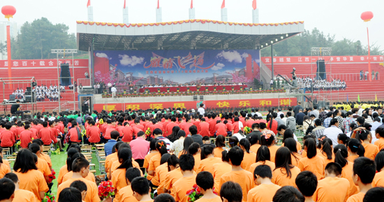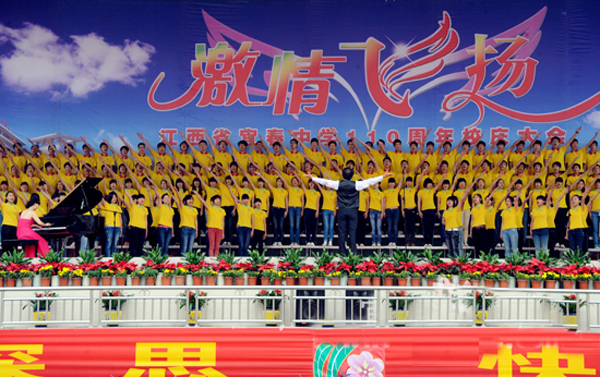 儀式結(jié)束后,出席慶典人員觀看了由宜春中學(xué)師生表演的文藝節(jié)目。