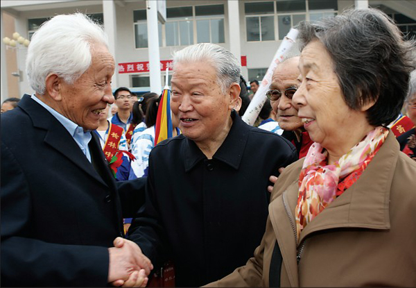 新揭幕的銅像成了校友們爭相拍攝的焦點,不時有校友們在這里留影紀念。蒼蒼白發(fā)的老校友來了,才華滿懷、衣錦還鄉(xiāng)的外地學子來了,朝氣蓬勃、青春激蕩的中學生來了……不論認識與否,人們都激動地互稱校友,紛紛握手問候,深情相擁。當老校友們邂逅十幾年、幾十年甚至半個世紀以來未曾謀面的同窗時,個個像少男少女一樣蹦跳著、歡笑著,感慨萬千,老淚縱橫!
