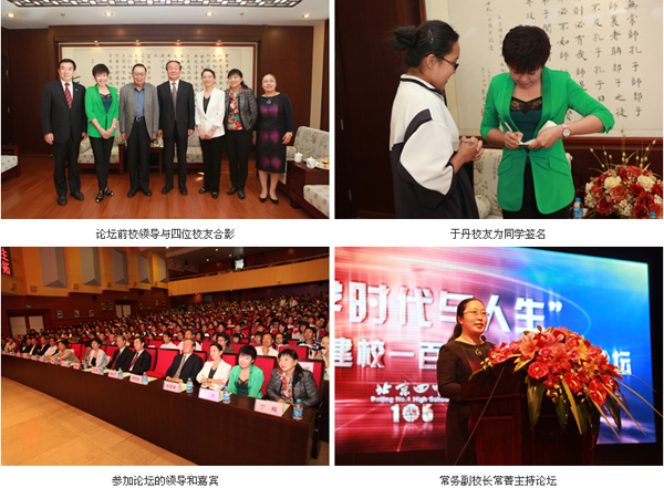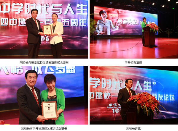 接著,北京四中五十年代校友陶西平、六十是年代校友蔣效愚、七十年代校友張景斌、八十年代校友于丹分別回顧了自己在北京四中的學(xué)習(xí)經(jīng)歷,結(jié)合自己中學(xué)時代的生活,闡述了中學(xué)教育于人生的重要作用。劉長銘校長向演講嘉賓頒發(fā)了校慶演講紀念證書。