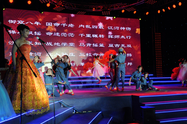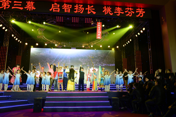 師生綜合展示活動(dòng)以老師們創(chuàng)編的《育才賦》為線索,以綜合文藝演出的方式,全面展示育才學(xué)!皯n天下、啟心智、揚(yáng)優(yōu)長”的學(xué)生培養(yǎng)成果。展示活動(dòng)共分三個(gè)篇章:第一篇章《圣地紅燭,薪火傳邦》,第二篇章《皇苑建校,鵬翼初翔》,第三篇章《啟智揚(yáng)長,桃李芬芳》。展示活動(dòng)全面體現(xiàn)了育才師生的風(fēng)采,不僅有很高的藝術(shù)水準(zhǔn),更是通過這樣的展示活動(dòng),使全體師生銘記歷史,總結(jié)學(xué)校辦學(xué)經(jīng)驗(yàn),明確目標(biāo),凝聚了下一步發(fā)展的力量。
