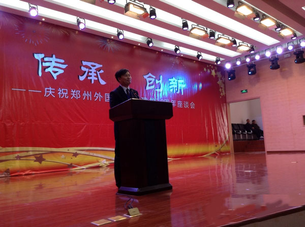 座談會(huì)現(xiàn)場(chǎng),鄭州外語(yǔ)中學(xué)校長(zhǎng)王中立致辭